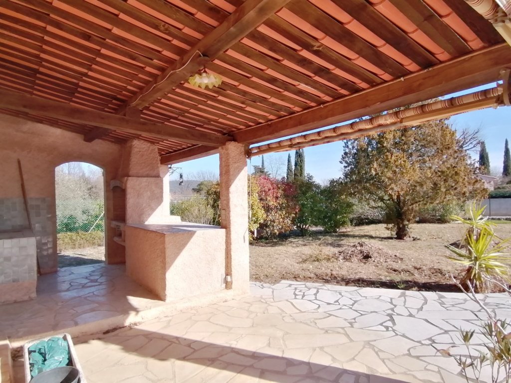 A Fayence, située au calme au fond d'une impasse, maison traditionnelle de plain-pied d'environ 130m², comprenant un hall d'entrée, un grand séjour / salon donnant sur une belle terrasse, cuisine équipée avec accès à la buanderie / chaufferie, quatre chambres dont une avec point d'eau, une salle d'eau et un WC séparé.
