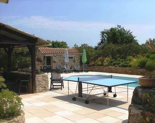 - Un deuxième petit Mazet sur deux niveaux comprenant une entrée dans la pièce à vivre / cuisine équipée, une salle de douche, un WC et une chambre en rez-de-jardin.