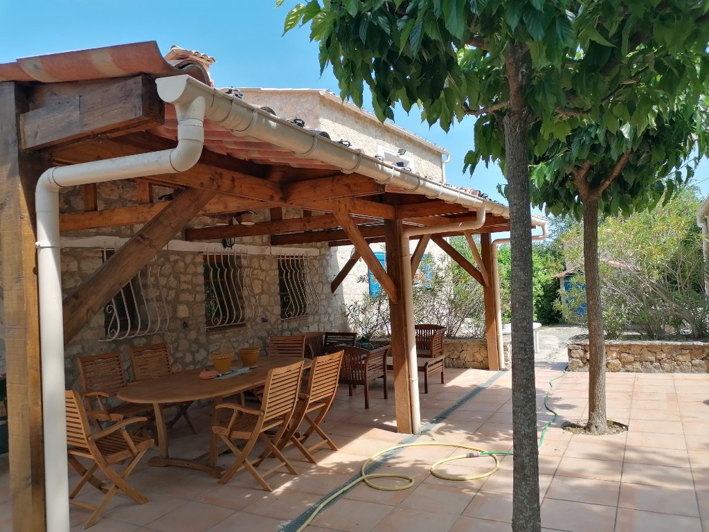 - Un mas comprenant une entrée dans le salon, cellier, cuisine équipée avec accès à la terrasse, une chambre et salle de douche.