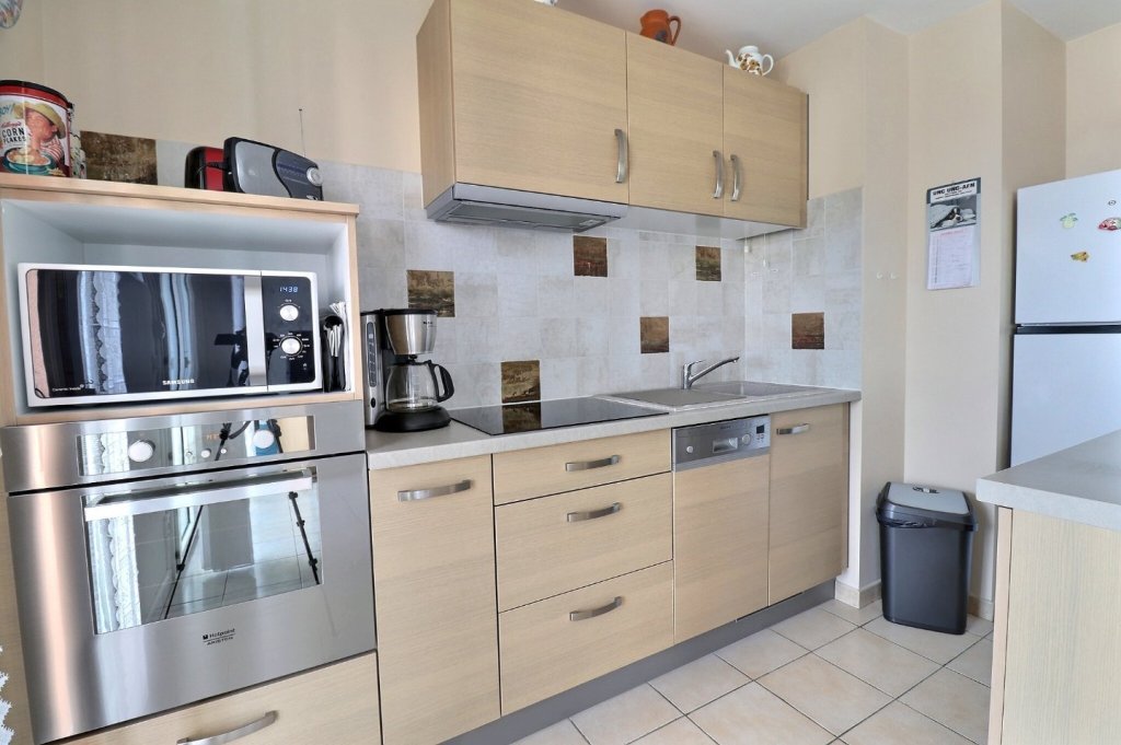 - Il se compose d'une belle entrée avec rangement , d'une grande pièce à vivre de presque 25 m2 avec sa superbe cuisine équipée semi ouverte.