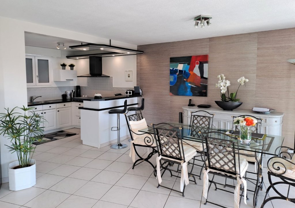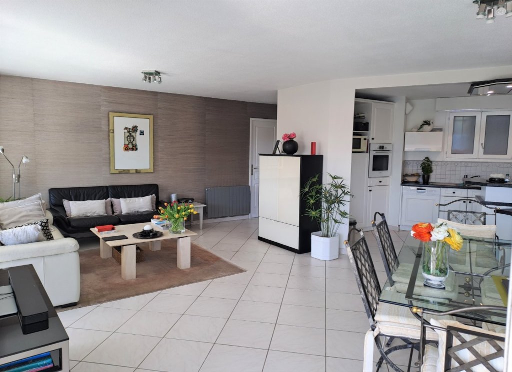 Dans un environnement résidentiel, nous vous proposons un appartement spacieux de 87 m² composé de 3 pièces, un grand séjour salle à manger avec une cuisine américaine, ainsi que 2 suites parentales avec salles de douches et bains, 2 wc. L'ensemble donnant sur une magnifique terrasse ensoleillée de 44m². Au calme et en parfait état. Un garage et une place extérieure complètent ce bien.