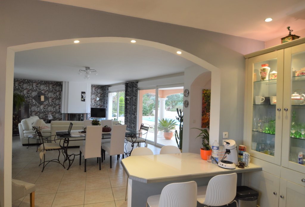 Dans un environnement idyllique, nous vous proposons cette belle villa de style provençale de 140m² implantée sur un terrain de 2000m² avec piscine. Elle se compose au rdc d'un séjour avec cheminée, une cuisine ouverte, deux grandes chambres au rdc avec salle de bains, wc séparé, un dressing. A l'étage une suite parentale avec balcon surplombant le jardin sans vis-à-vis avec une vue panoramique sur le village de Fayence, une salle de douches avec wc. Sous-sol et garage pour 2 voitures