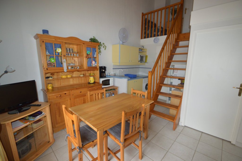 Ce bien se compose au rez de chaussée d'une pièce de vie avec cuisine équipée, d'une chambre, d'une salle d'eau et d'un WC , et à l'étage vous profiterez d'une petite chambre et d'une mezzanine.